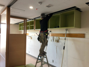 ⑥家具移設、増設 造付家具があり、パーテーションの邪魔になる場合は、移設するか移設ができない場合は、新しい家具を設置します。